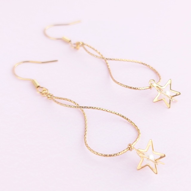 スターにゆれるキラキラドロップピアス