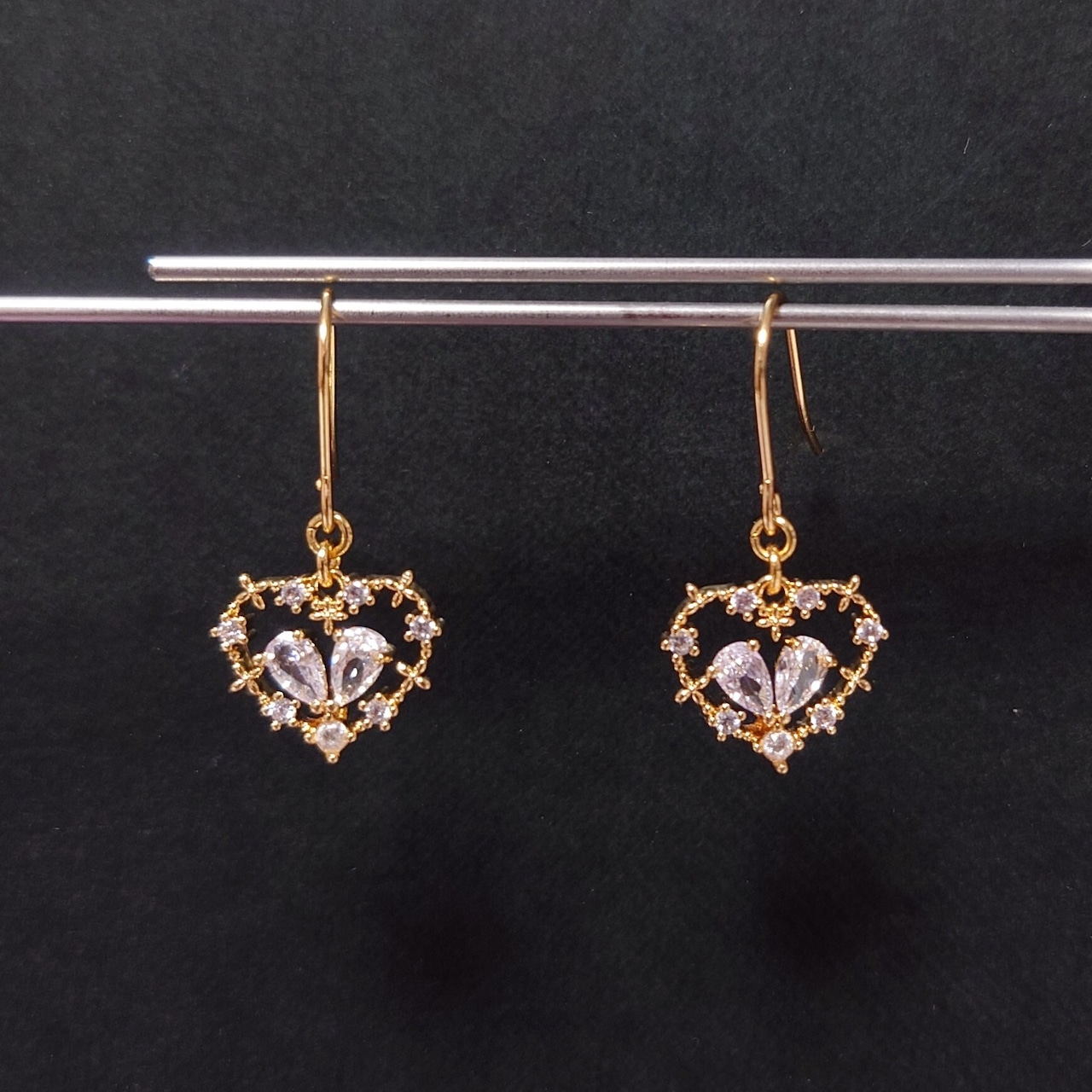 耳元で煌めく、ハートのキラキラピアスです。シンプルながらも、存在感のあるデザインがあらゆるシーンに華やかさを添えます。日常使いはもちろん、特別なお出かけにもぴったりなアイテムです♡