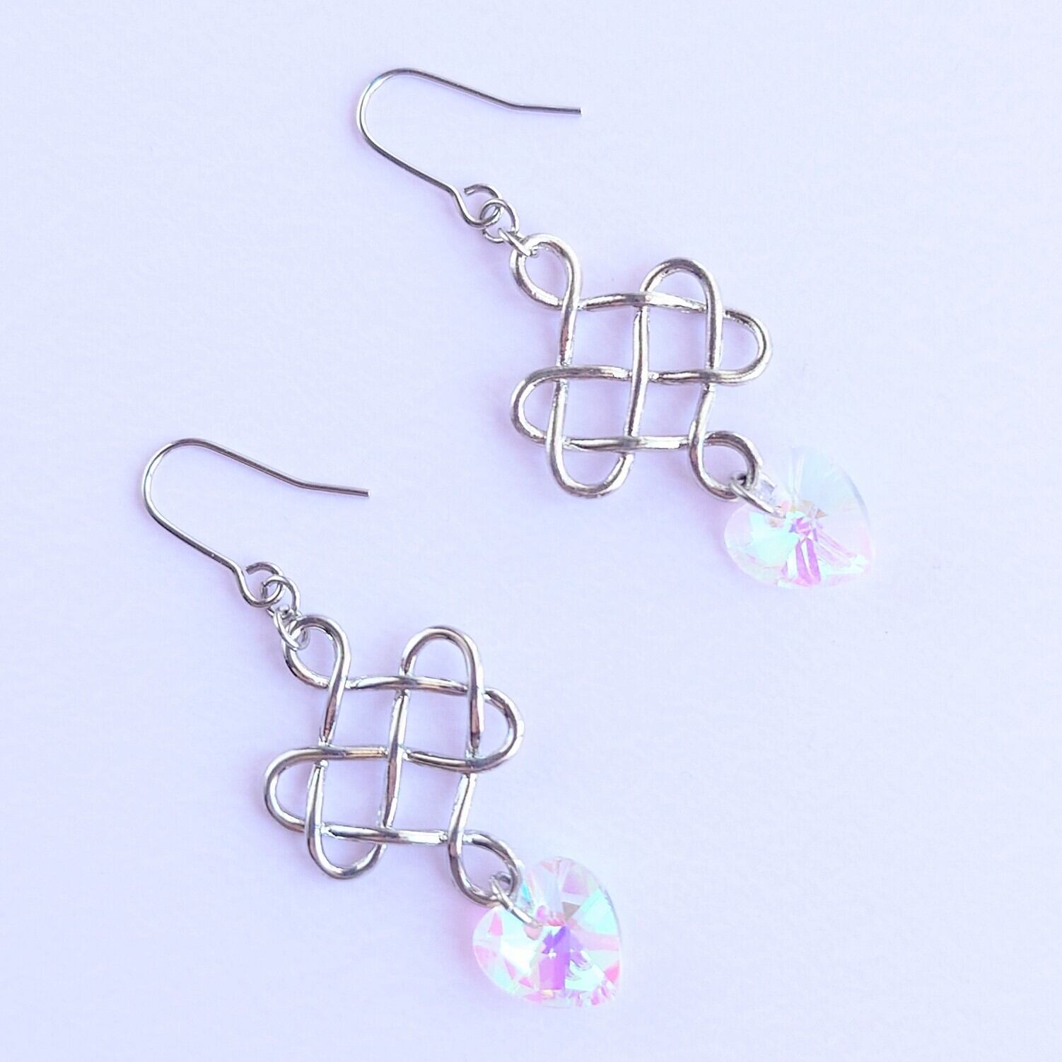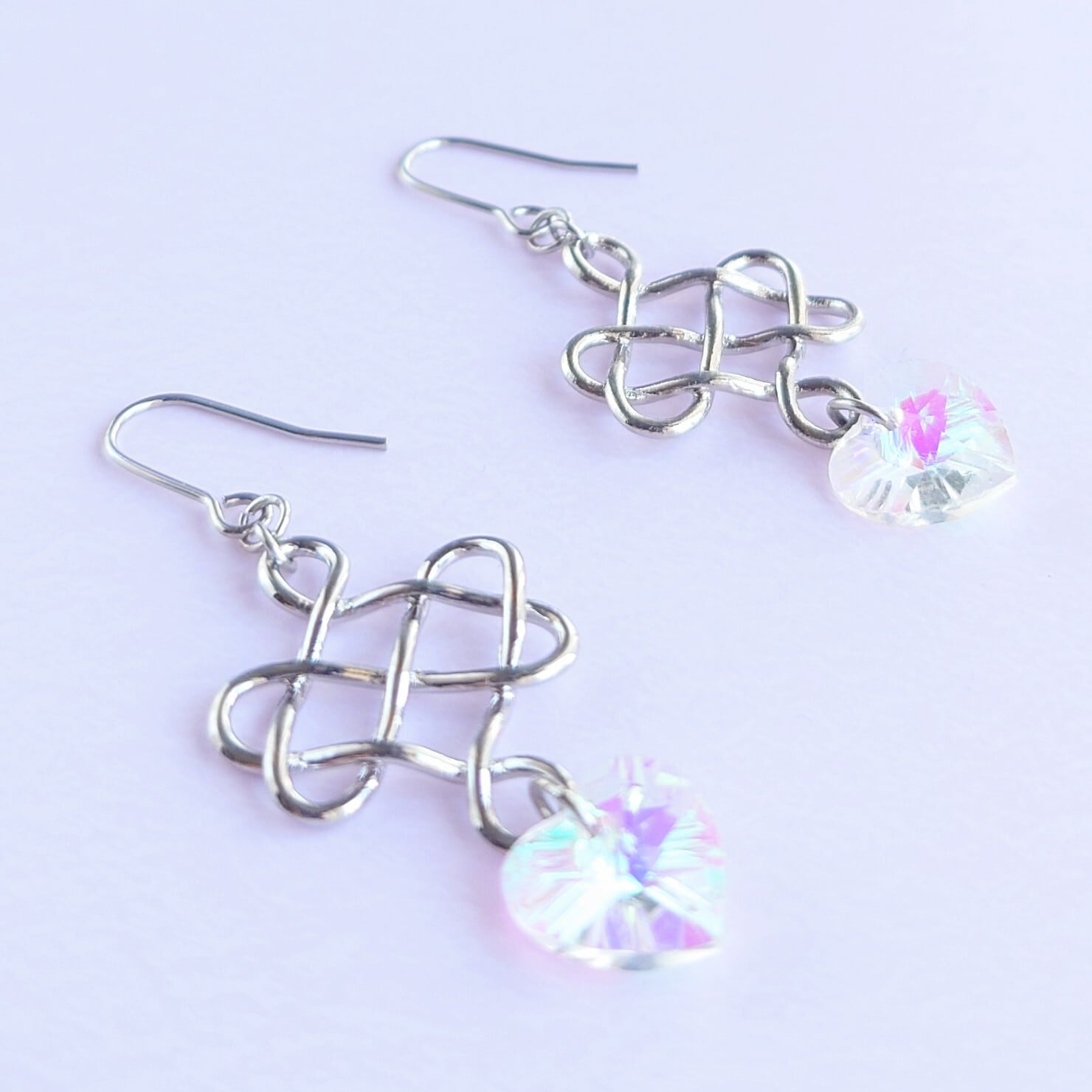 ハートのインフィニティパーツにガラスチャームのハートでゆれるピアス✨