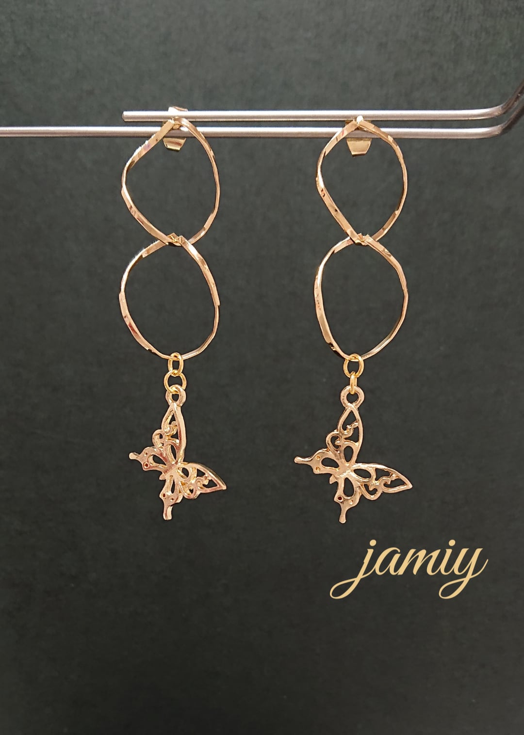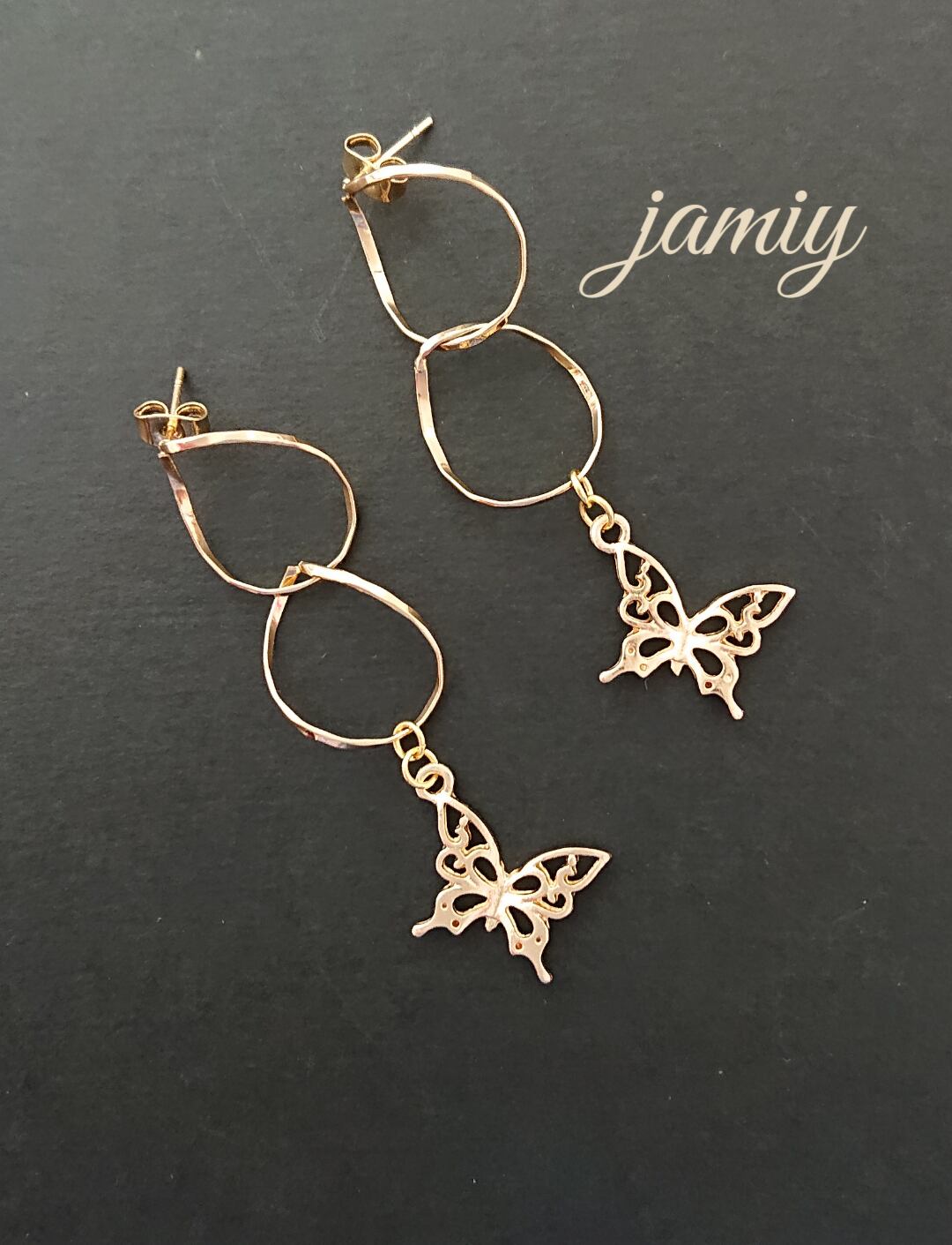 ツイストループのピアス芯にすかし蝶がゆれるピアス✨