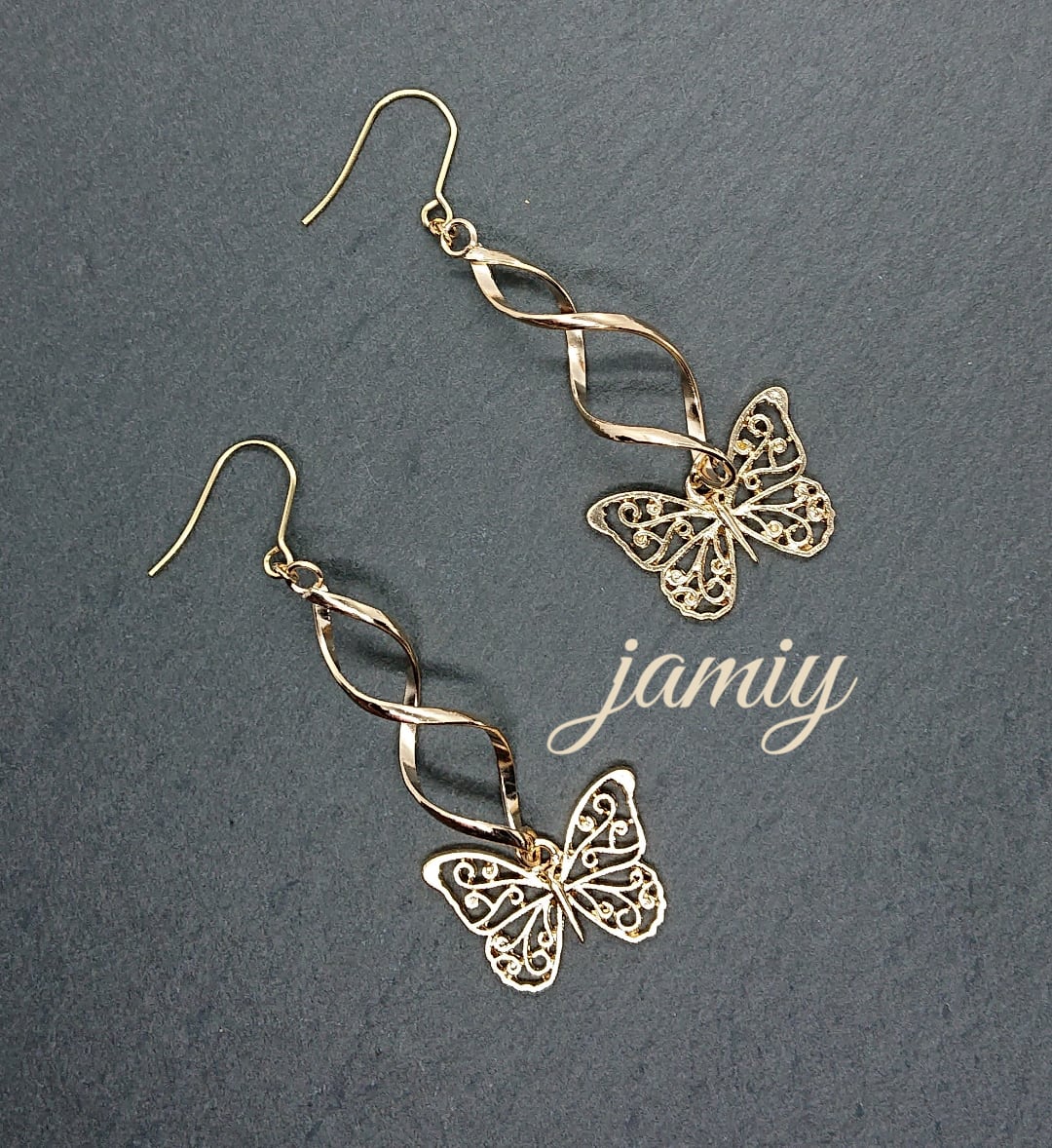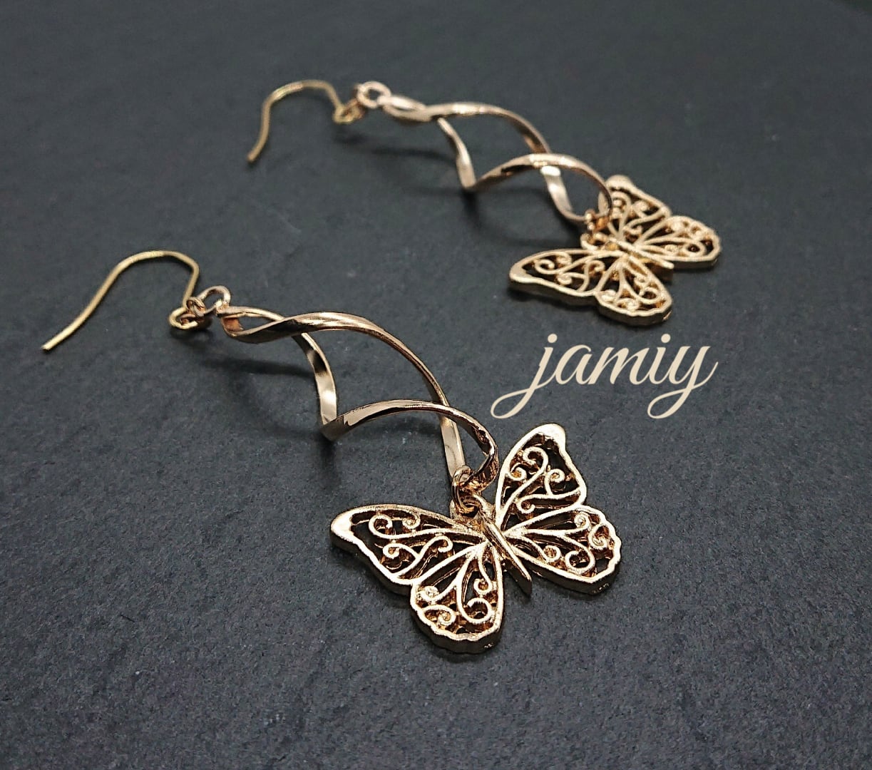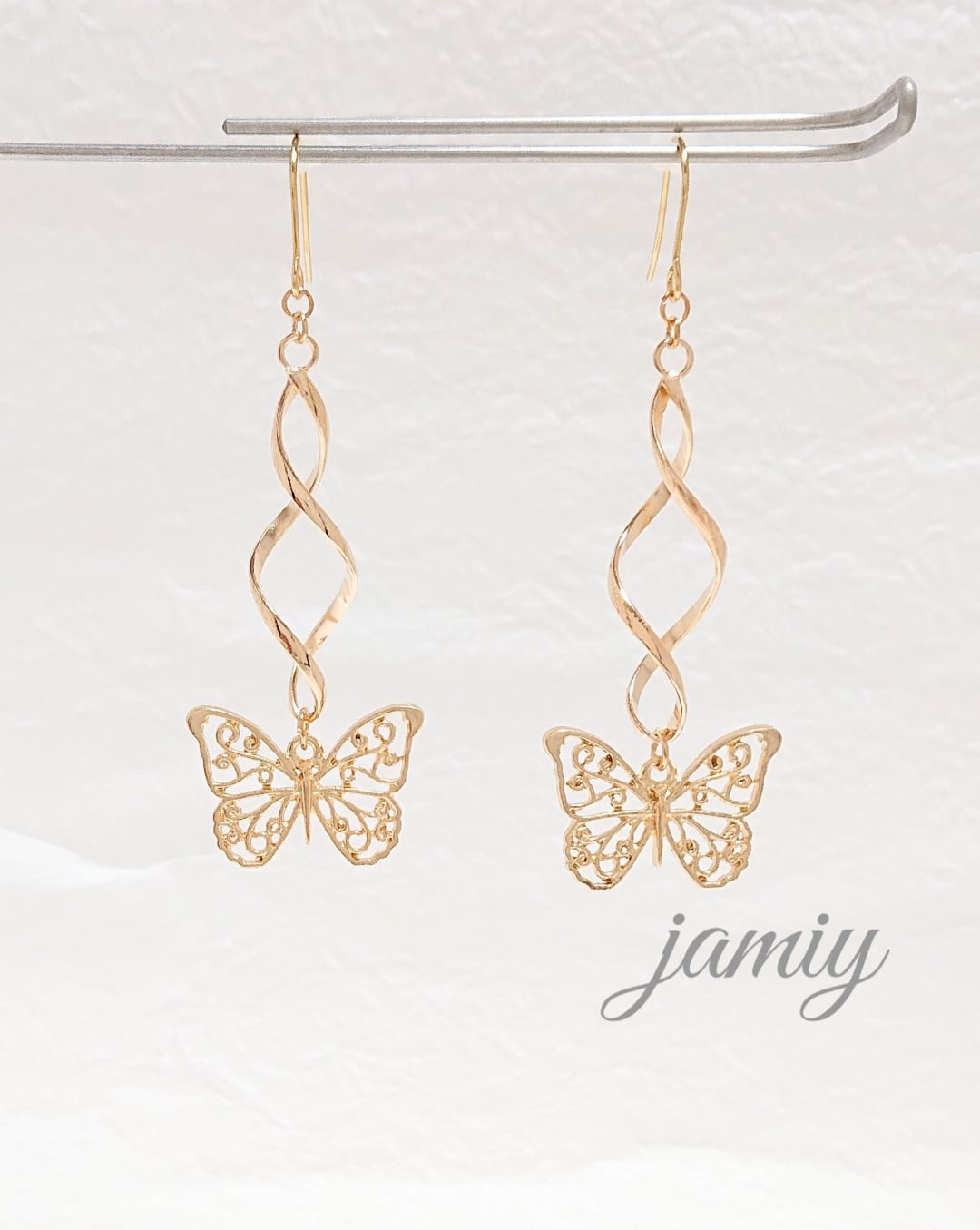 ツイストループにすかし蝶がゆれるピアス✨