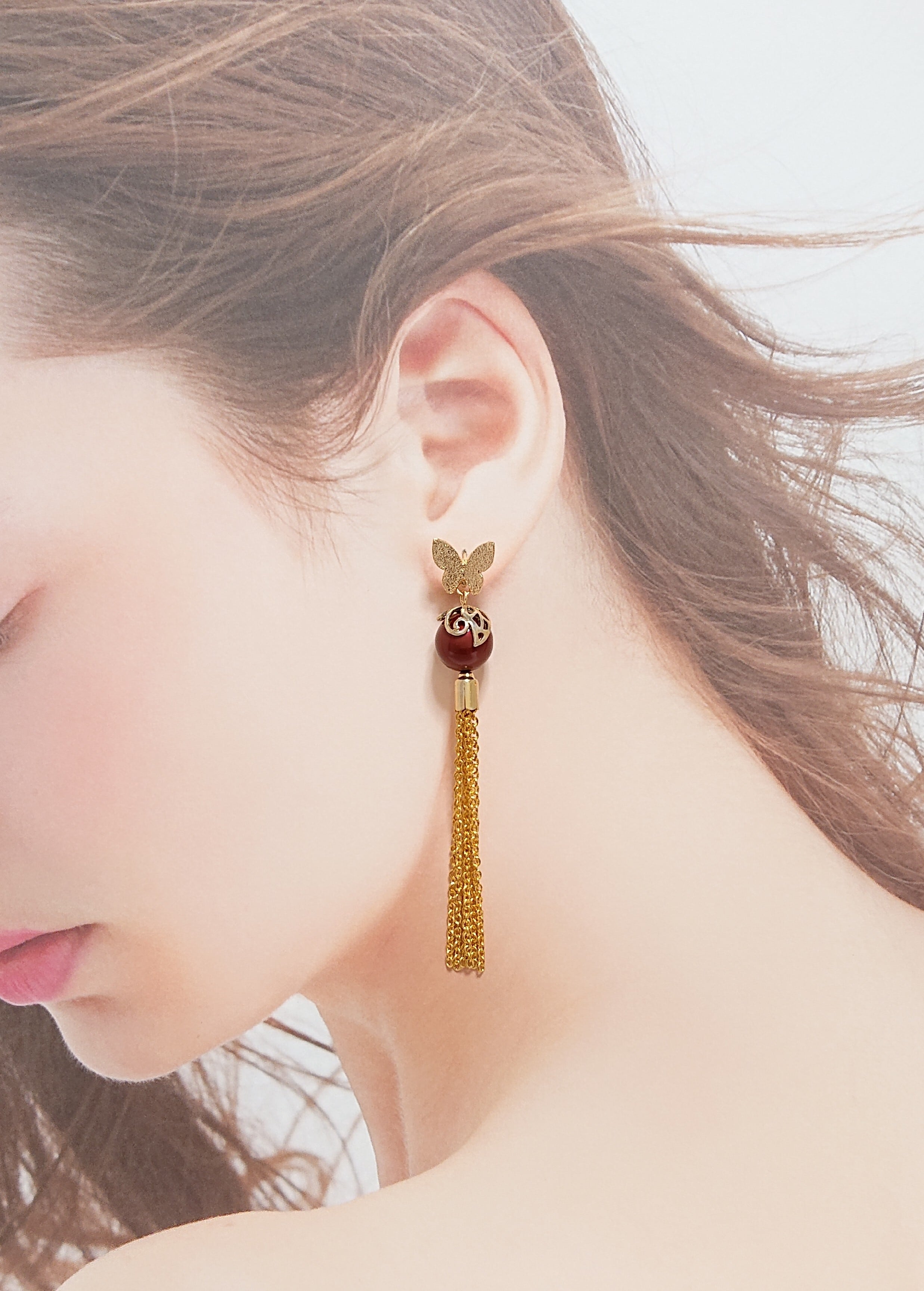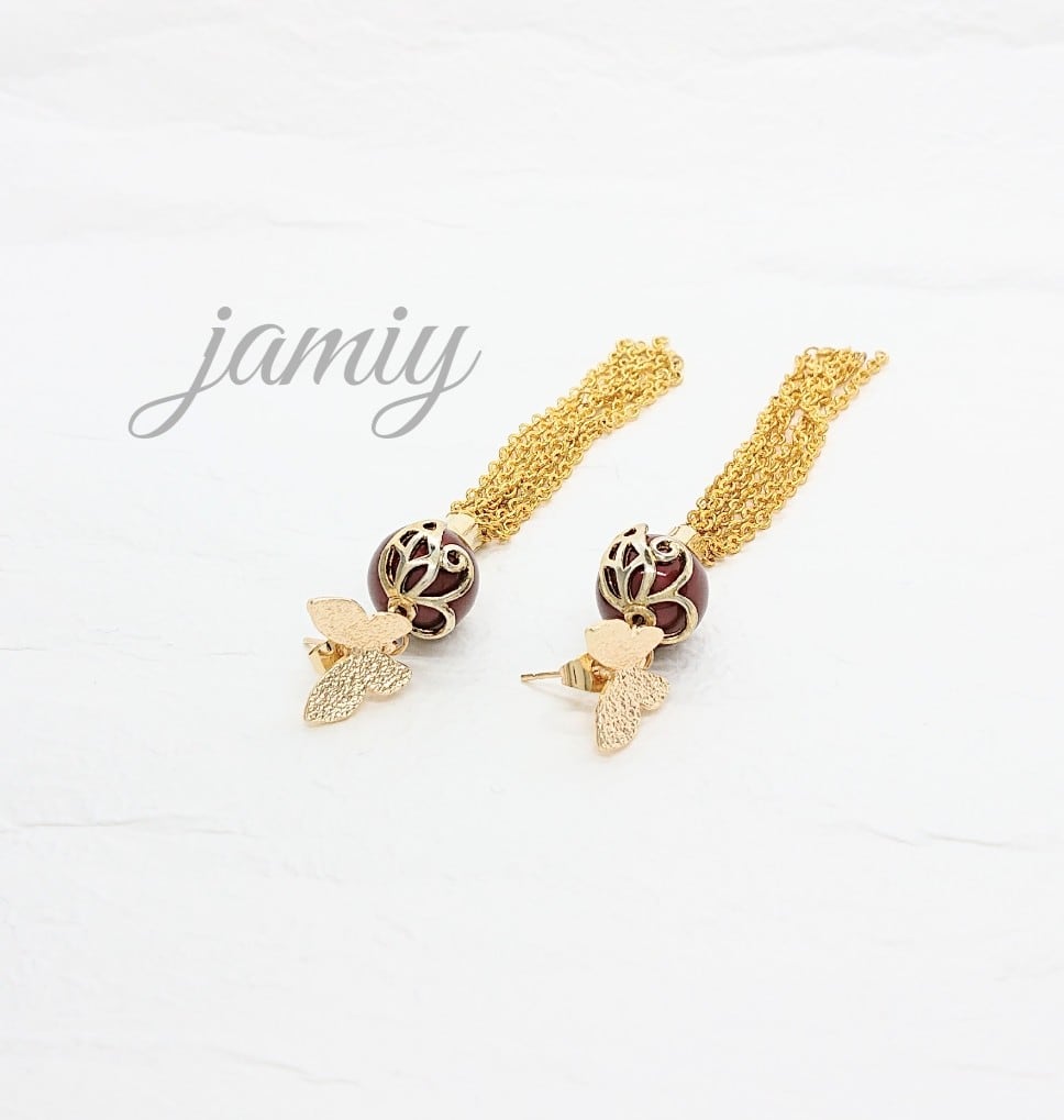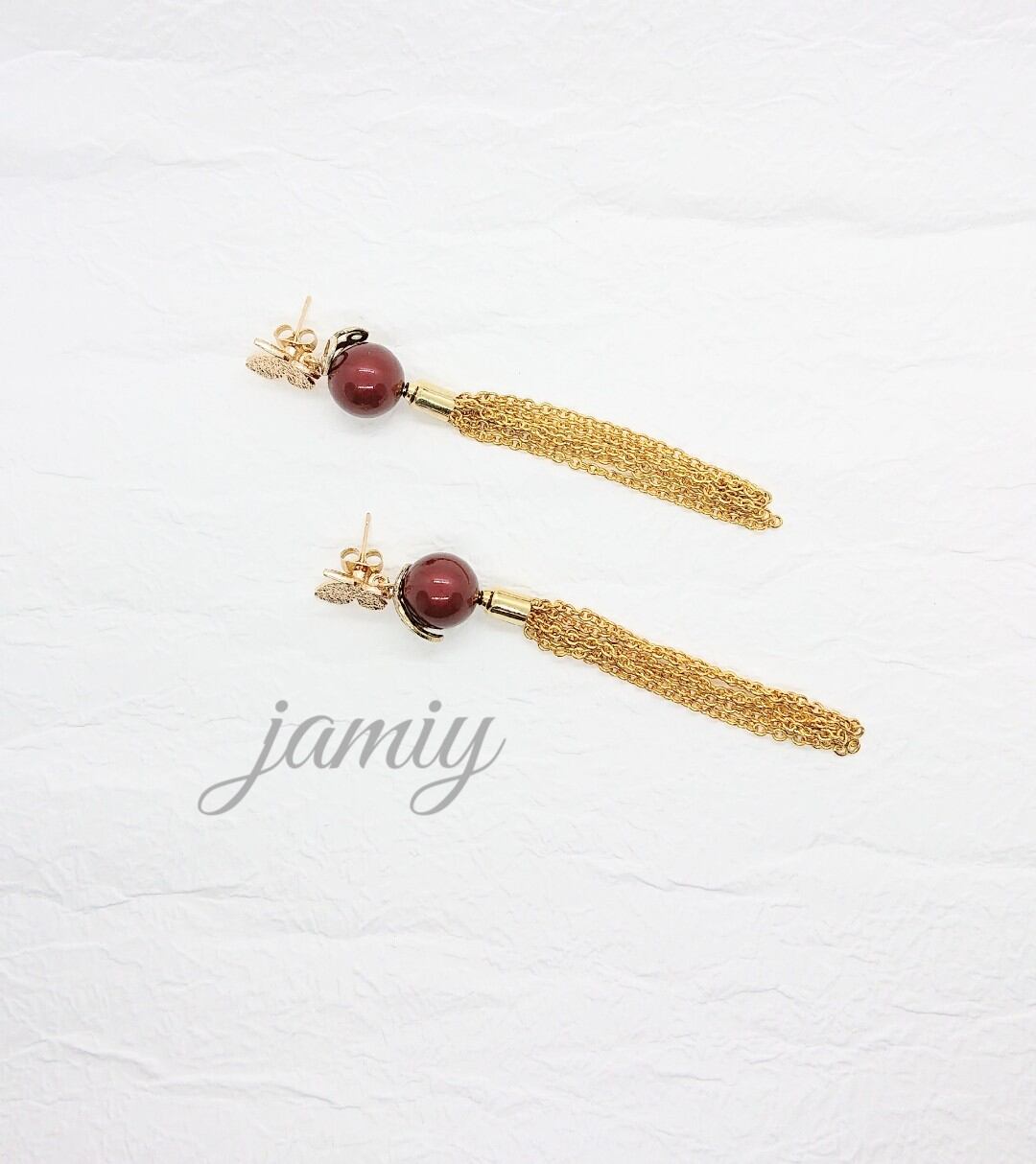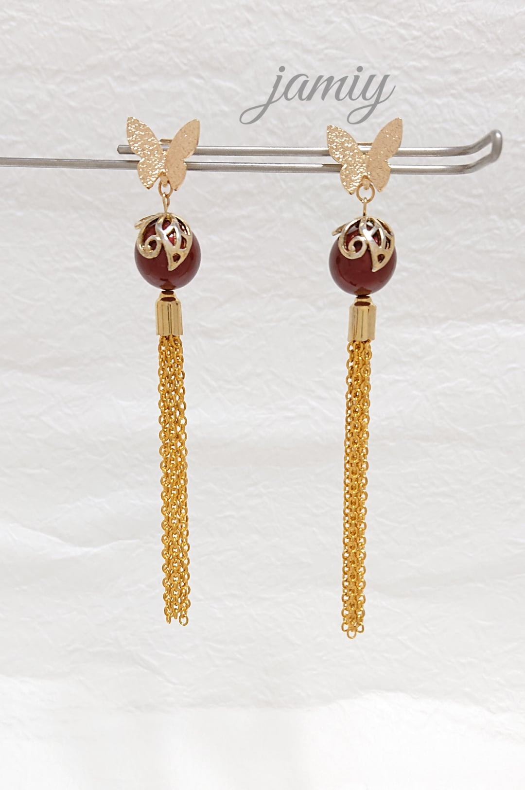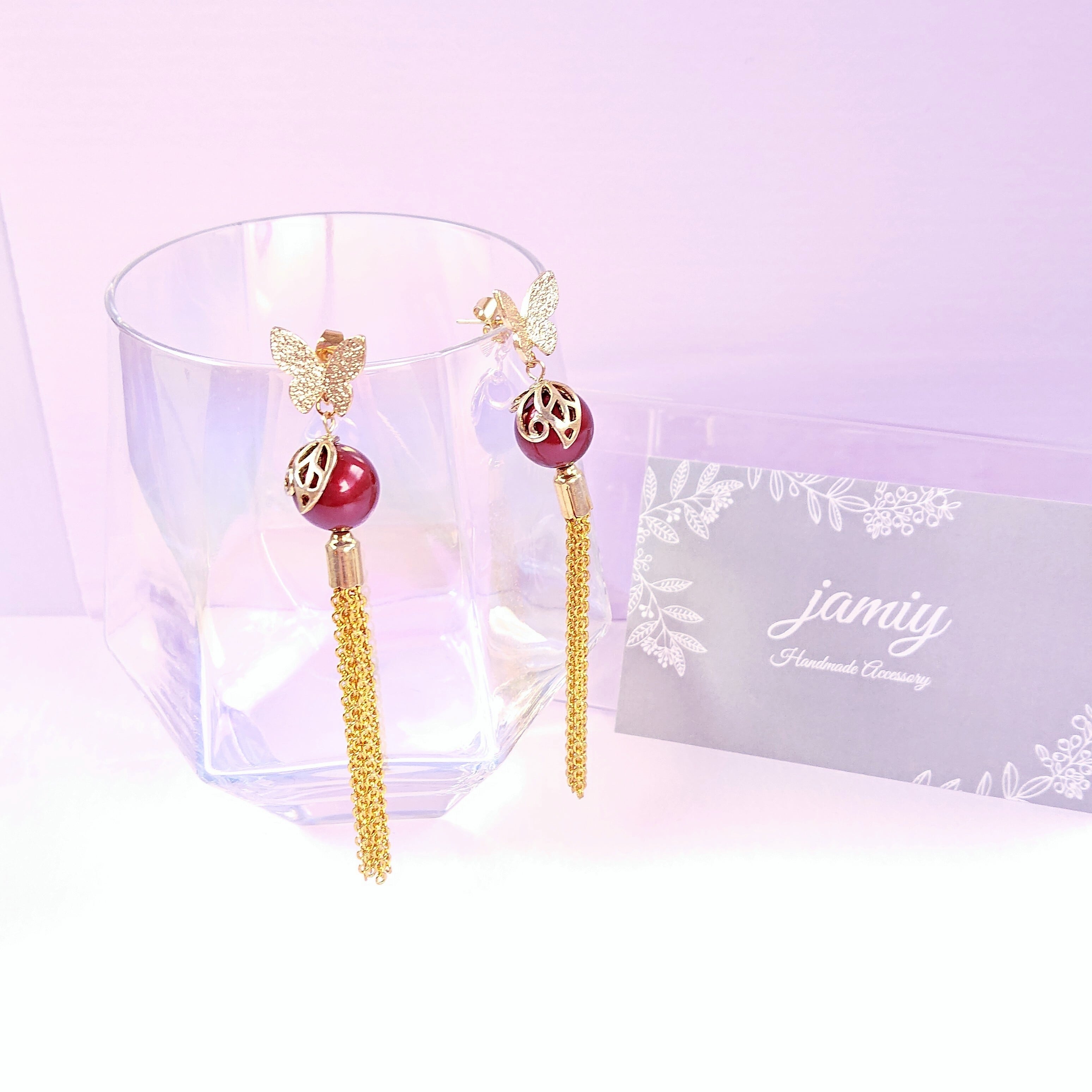 蝶のピアスに12mmのクリスタルパールにチェーンのタッセル✨