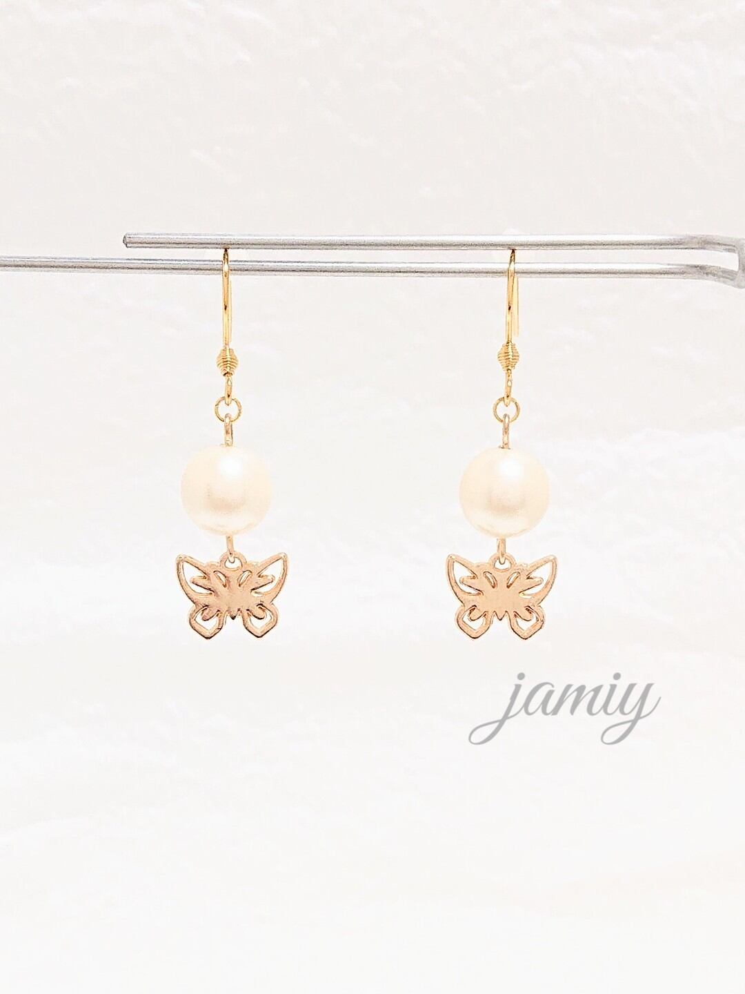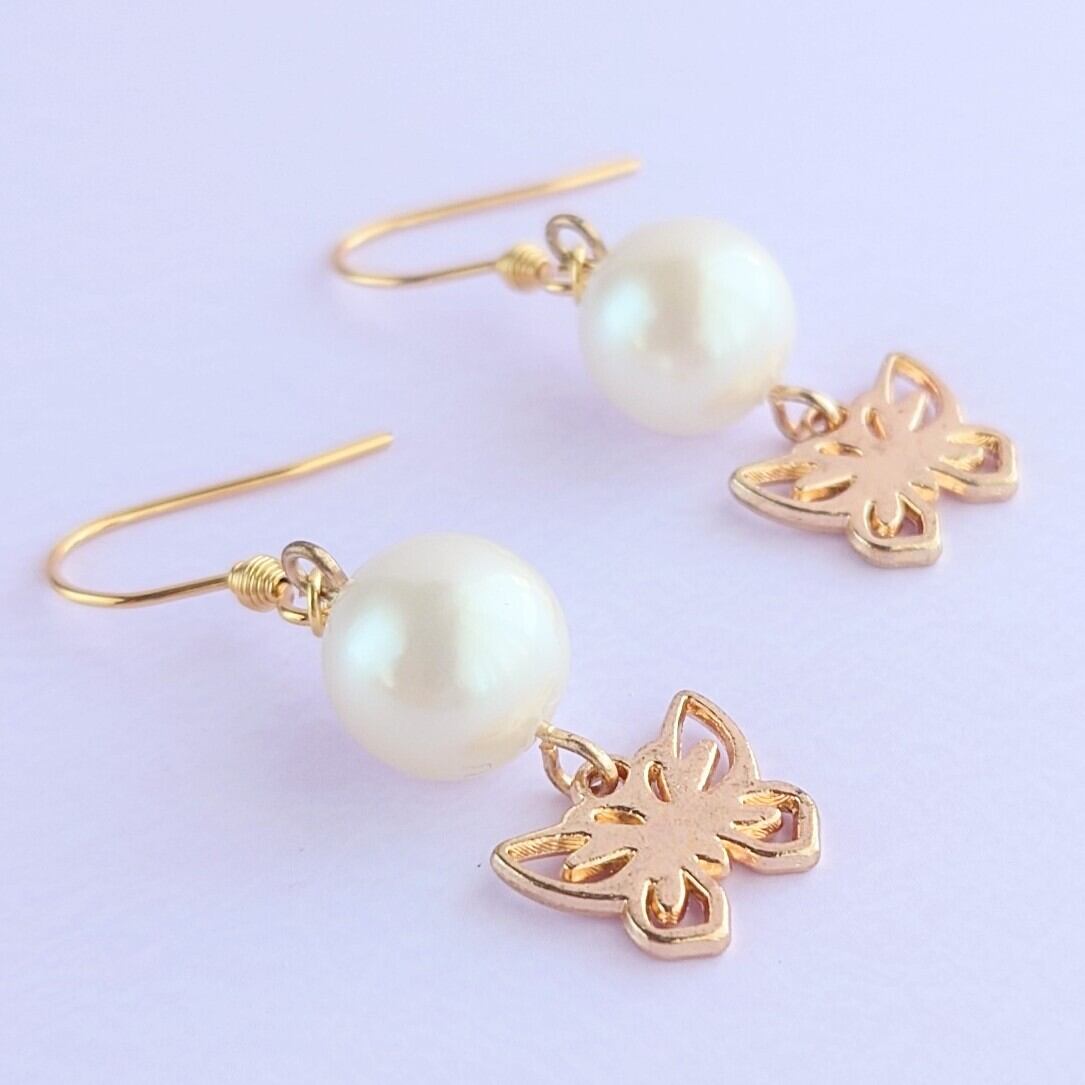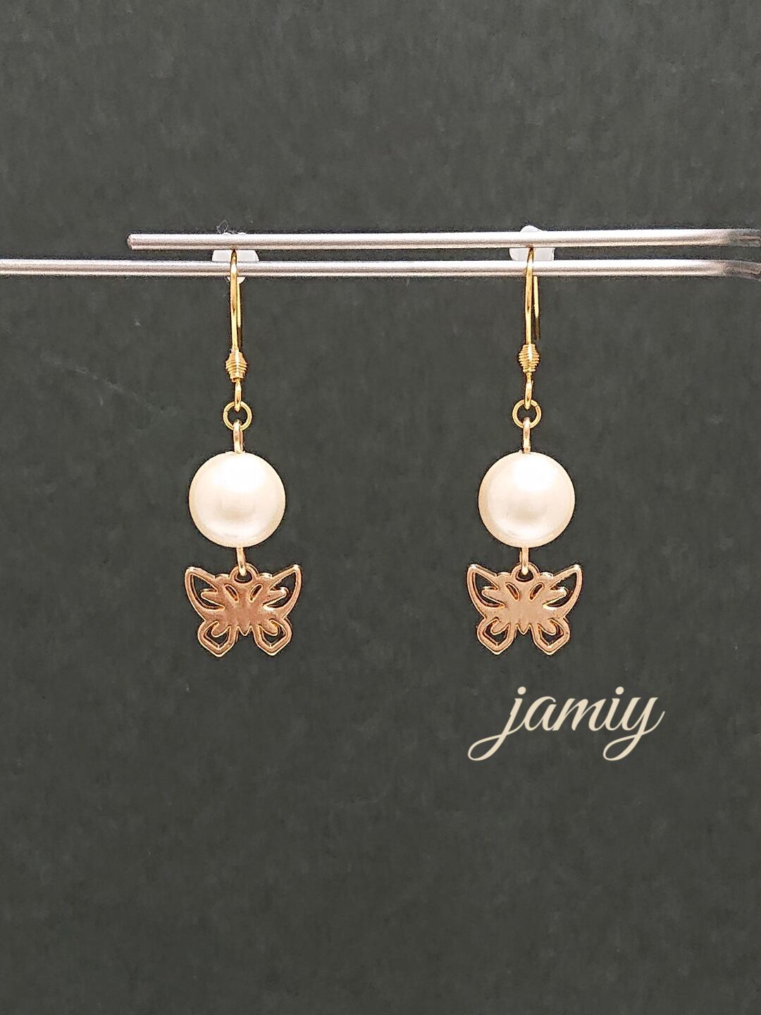 10mmのパールに蝶がゆれるピアス✨