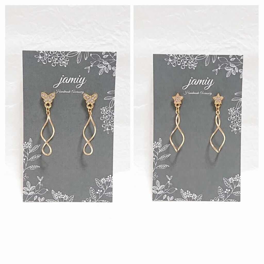 ピアスポストが蝶と星の2種類。両方ともガラスストーン入りでキラキラです♪