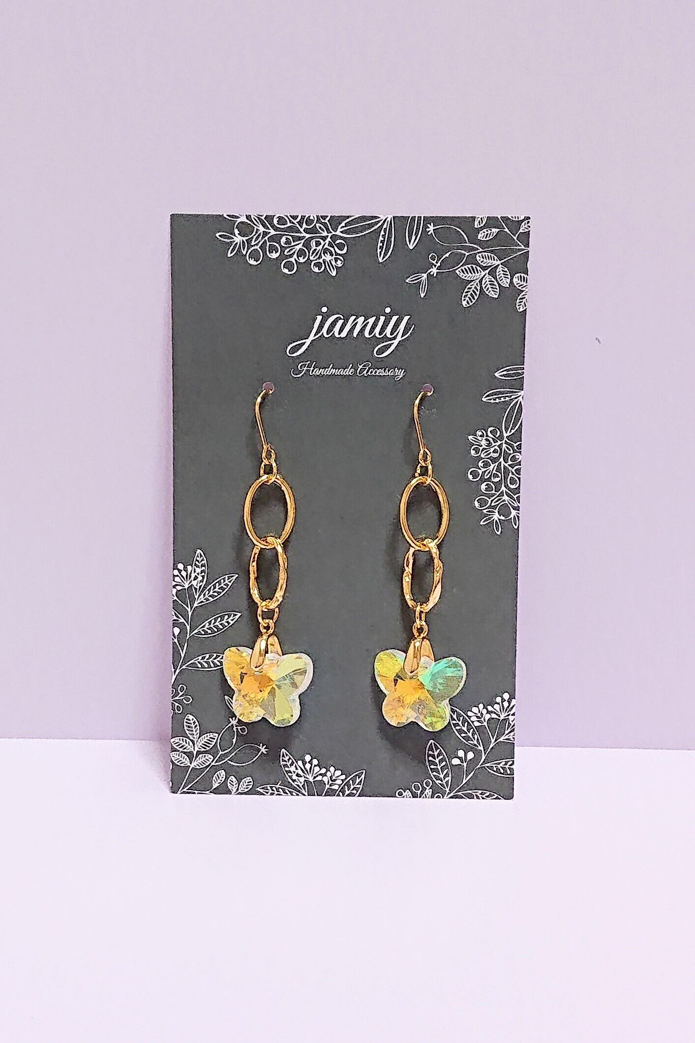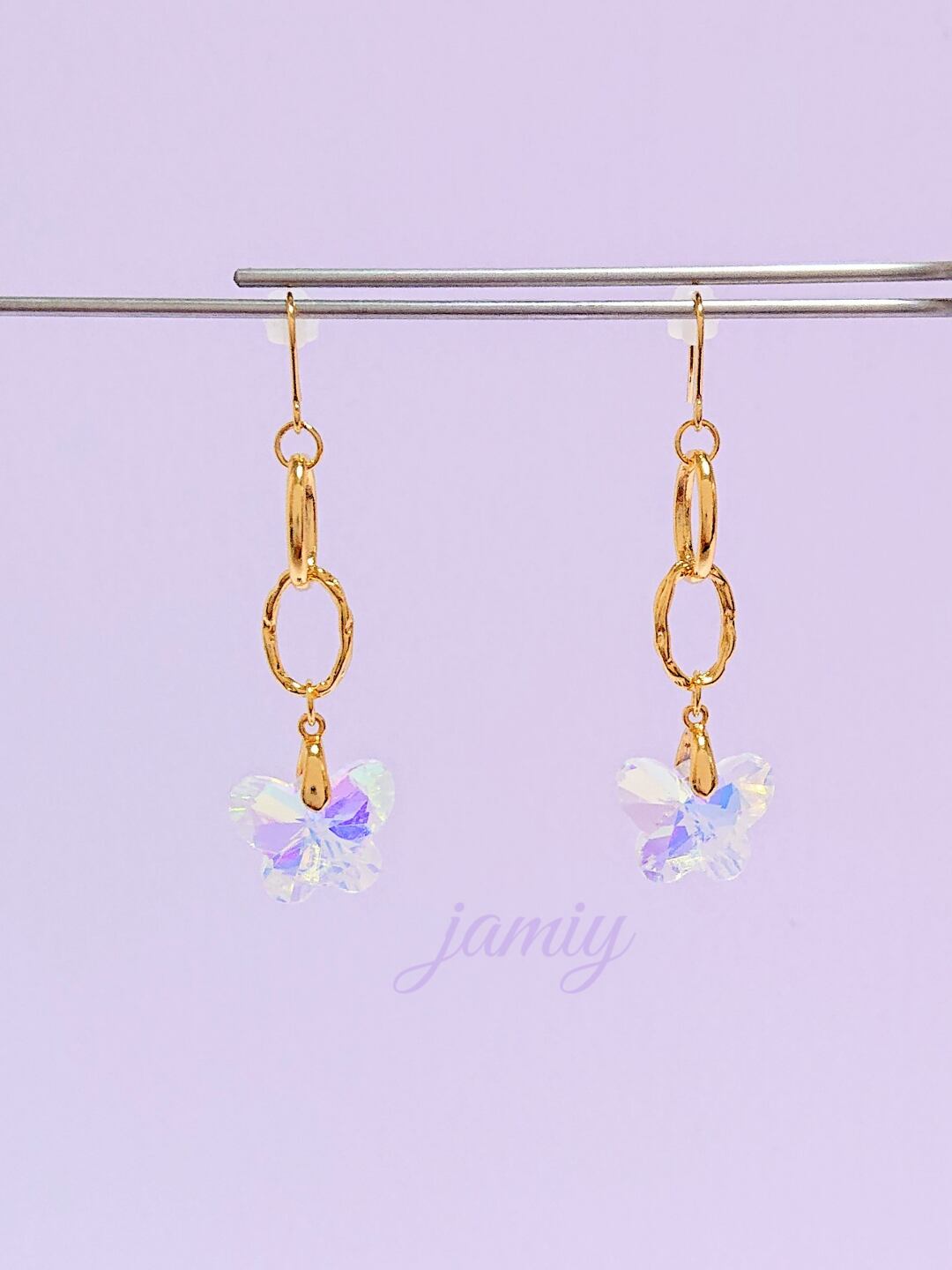 蝶のチャームはオーロラ色でみる角度で色が変化してキラキラでキレイです✨