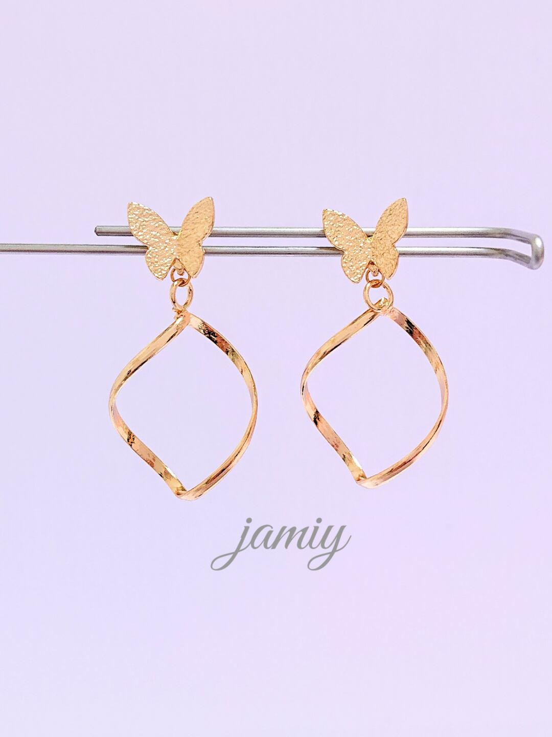 蝶ピアスにツイストループを合わせたシンプルなピアス✨