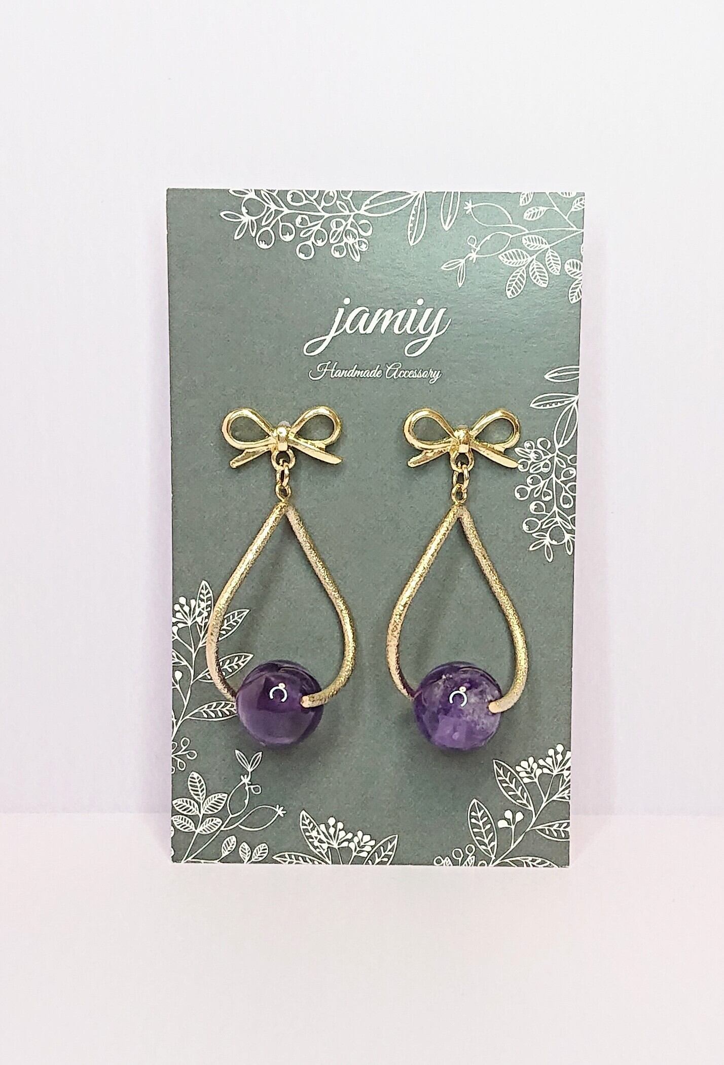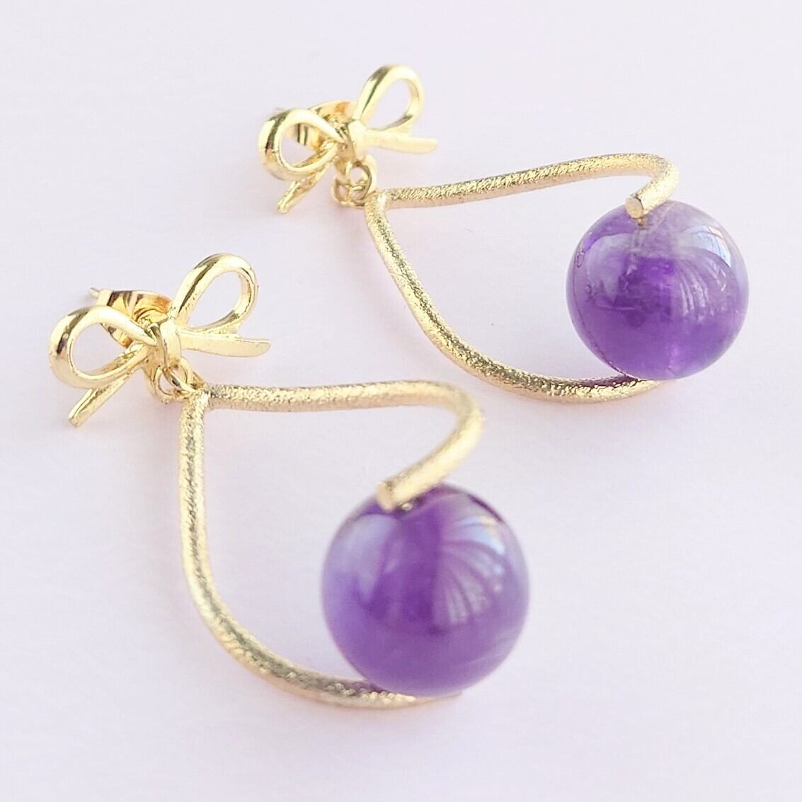 リボンピアスにループバチカンにアメジストをあわせたゆれるピアス✨