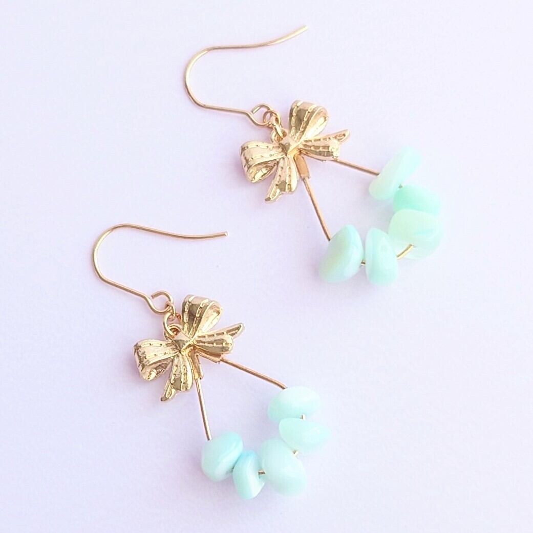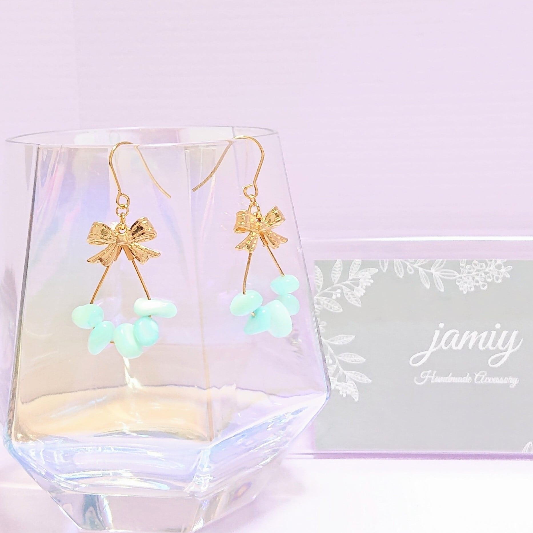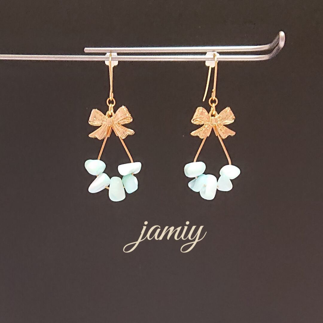 しずくフープにブルーのシェルビーズとリボンがゆれる✨