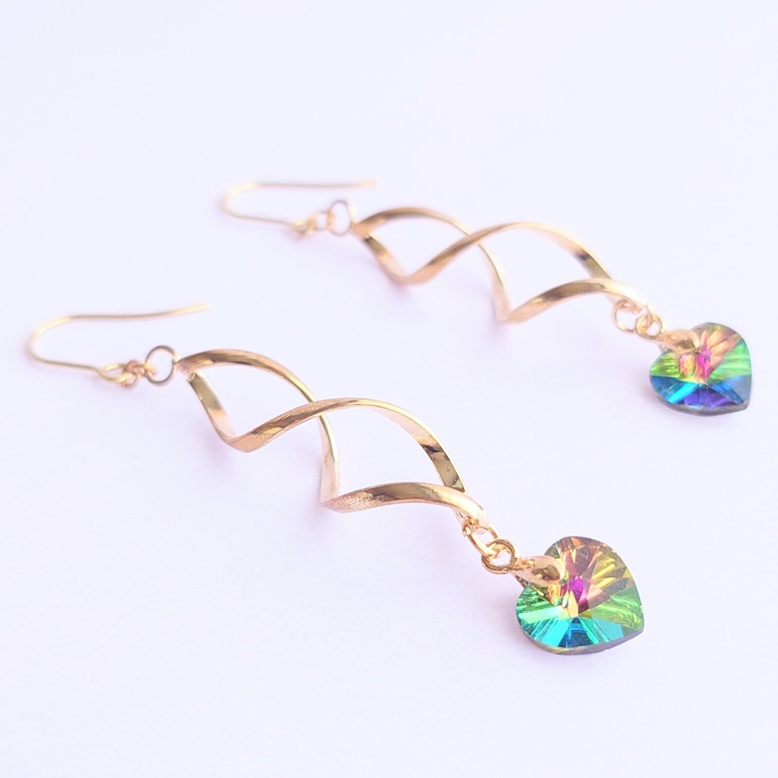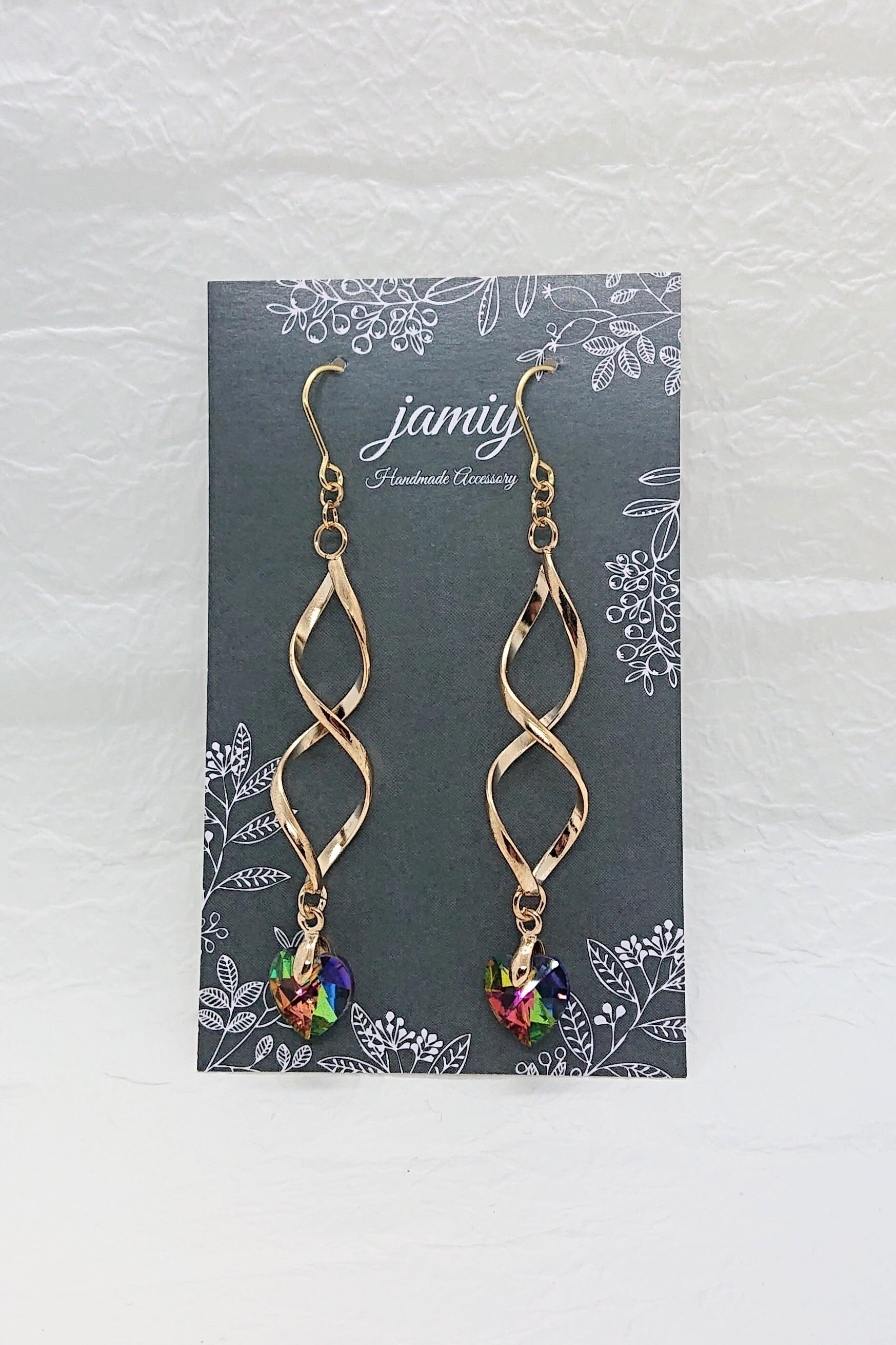 ツイストループにハートのガラスチャームがゆれるピアス✨