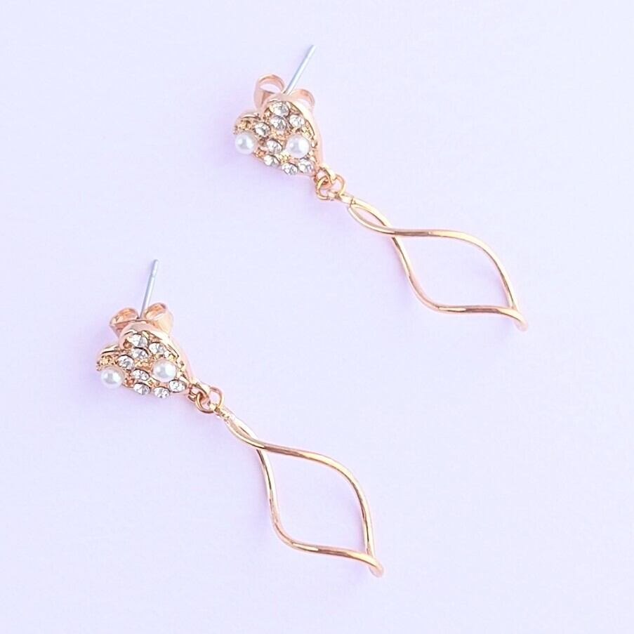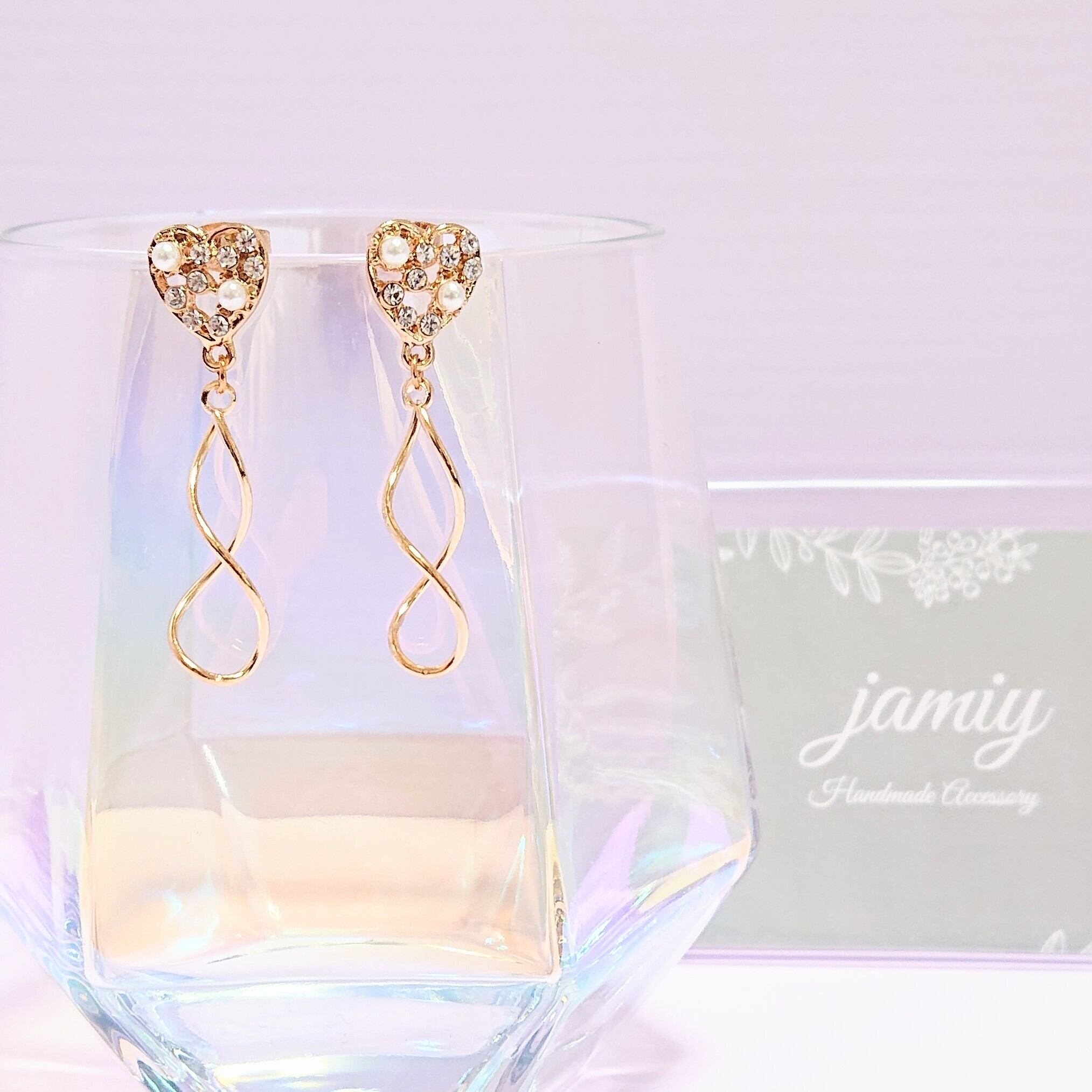 ガラスストーンとパールでキラキラのハートピアスにツイストループのゆれるピアス♡