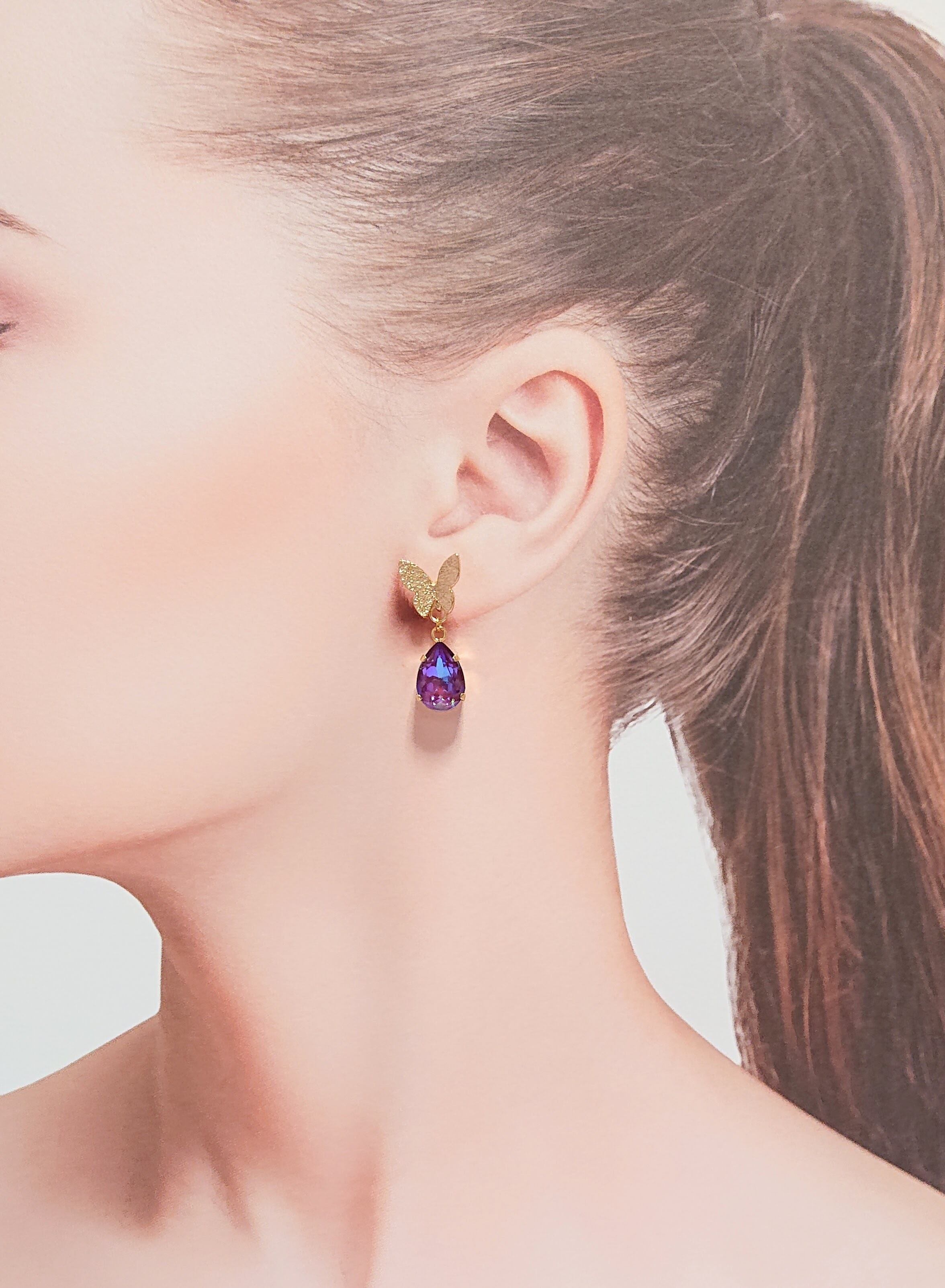 蝶にしずくのクリスタルがゆれるキラキラピアス♡