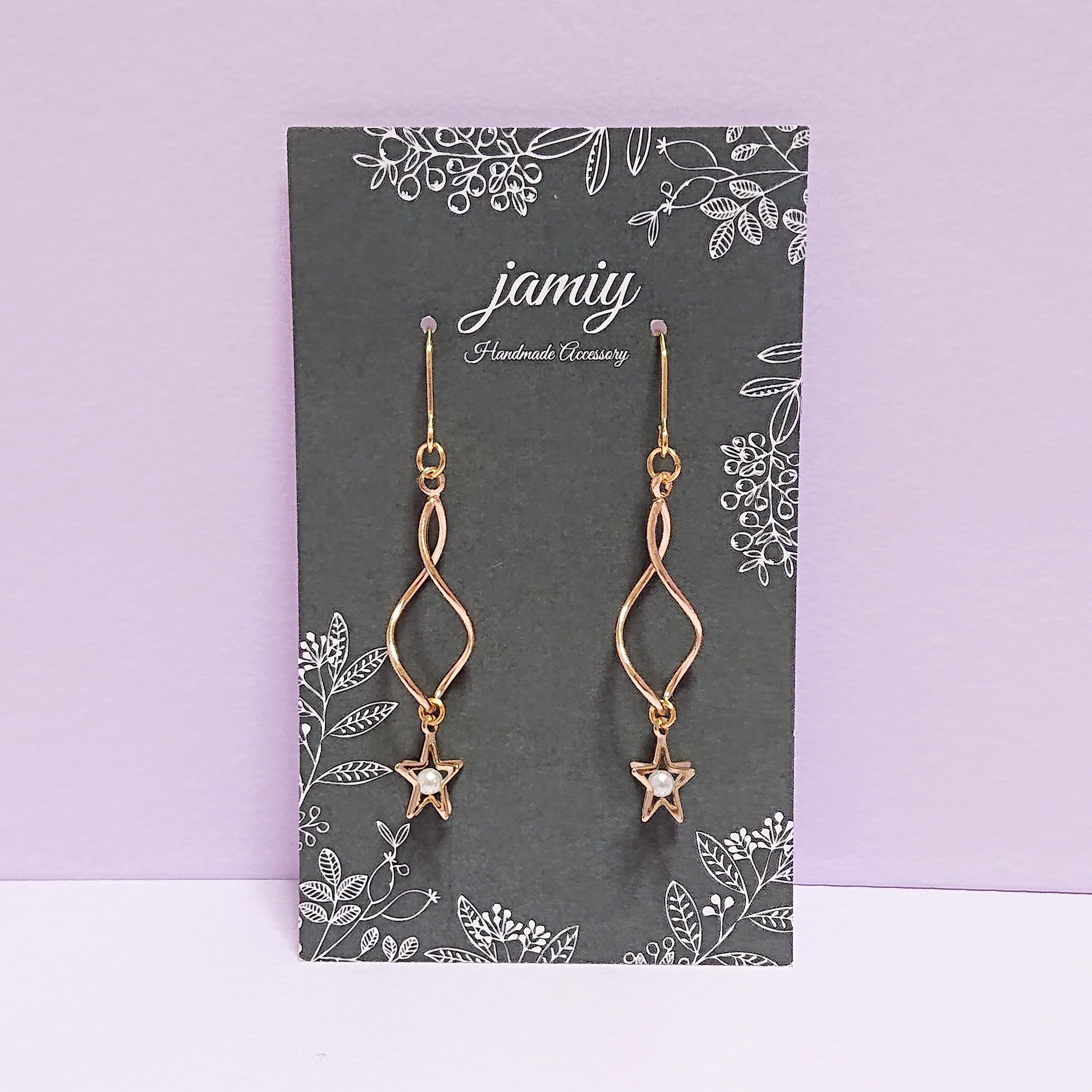 ツイストループにパールが入った立体的な星のパーツのゆれるピアス☆