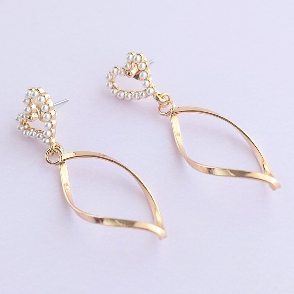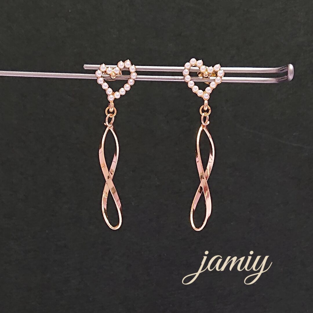 ハートにパールが並ぶピアスにツイストループのゆれるピアス♡