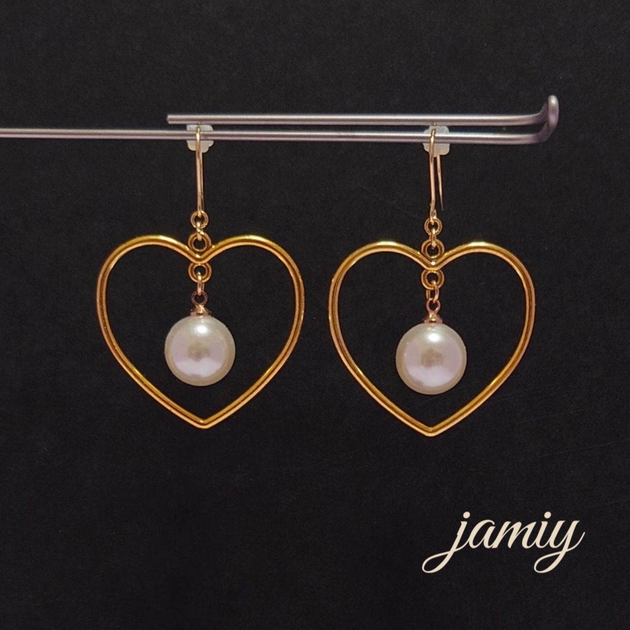 ハートにフェイクパールがゆれる、可愛らしいピアスです。シンプルながらも華やかなデザインで、デイリーからパーティーシーンまで幅広く活躍してくれます。耳元でゆれ、上品な印象を演出してくれます。
